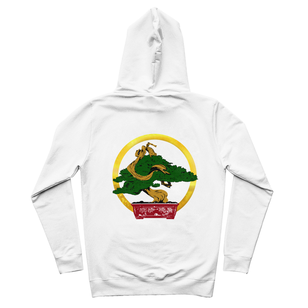 Unisex hooded sweatshirt. Self color jersey tape to inside of hood. Full needle double layered applied with a twin needle seam. Twin needle stitched armhole, hood and center pocket. Self color single jersey lined hood with flat tape cord running through channel. Button hole eyelets for cord channel.
