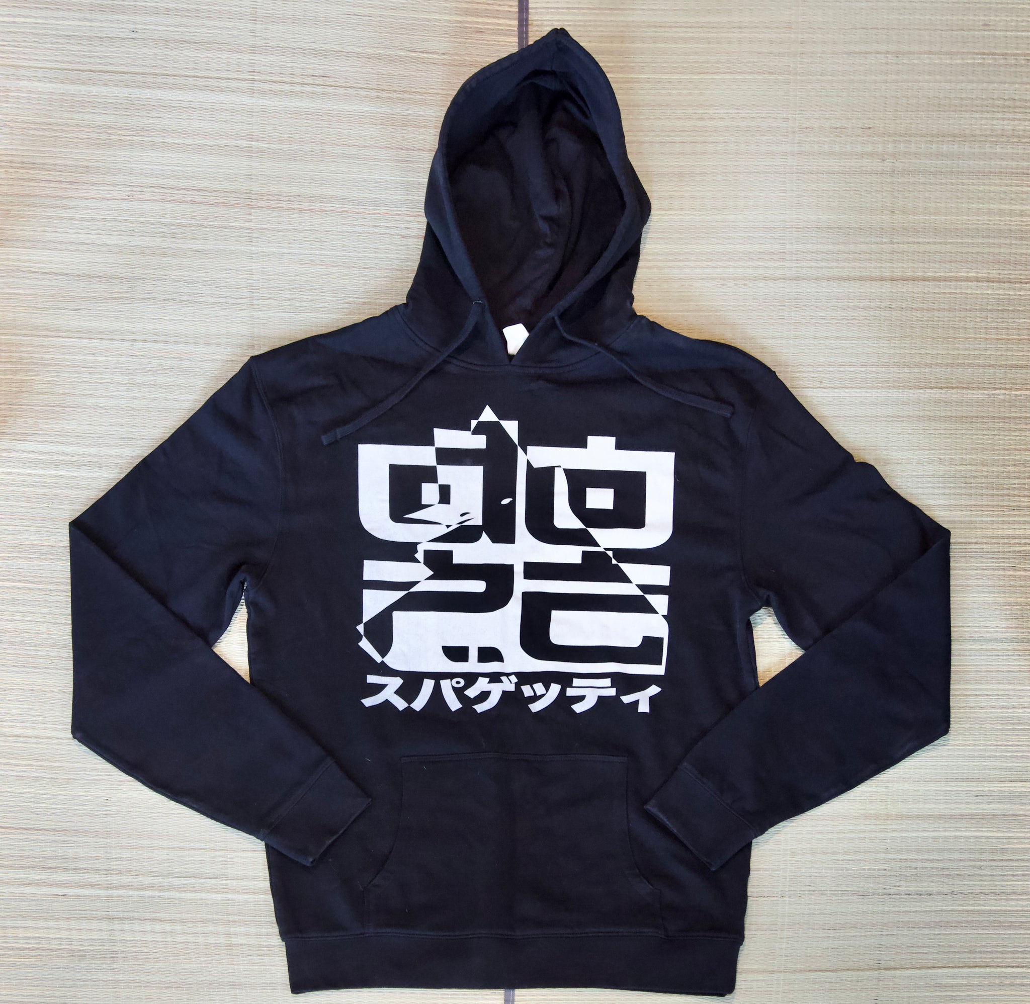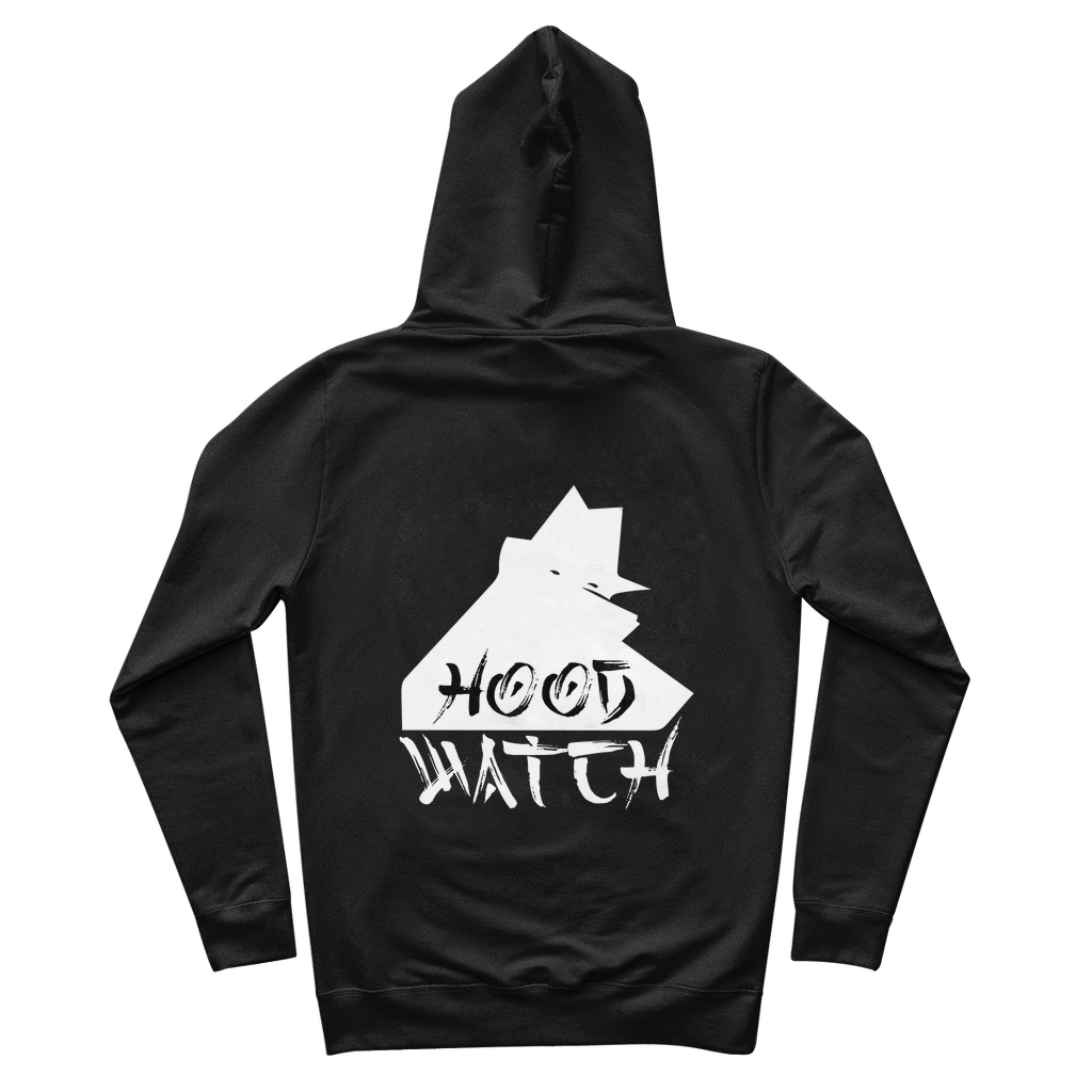 Unisex hoodie. Self color fabric tape to inside of hood. Full needle double layered applied with a twin needle seam. Double needle stitched armhole, hood and center pocket. Self color single jersey lined hood with flat tape cord running through channel. Button hole eyelets for cord channel.